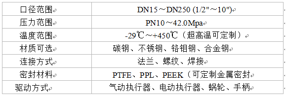 進(jìn)口高壓球閥技術(shù)參數(shù)
