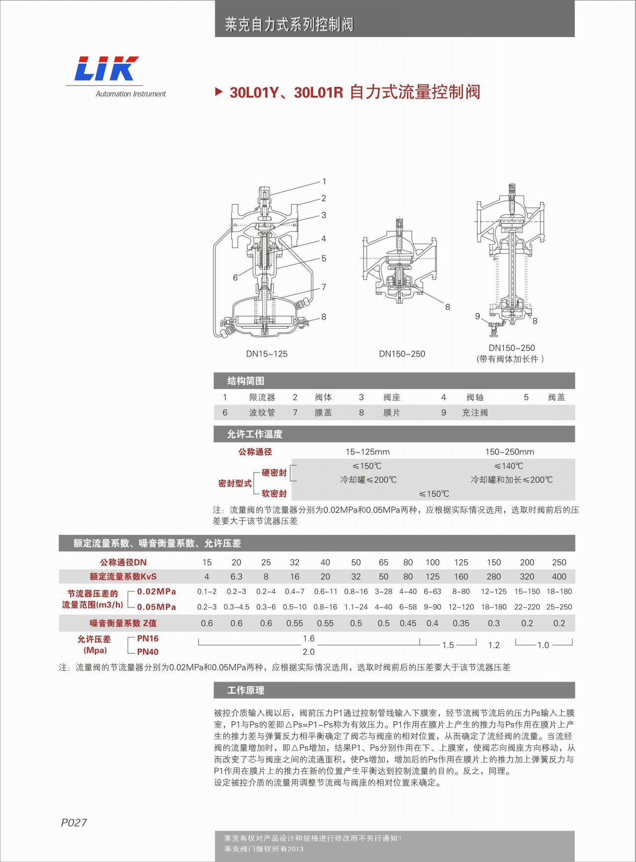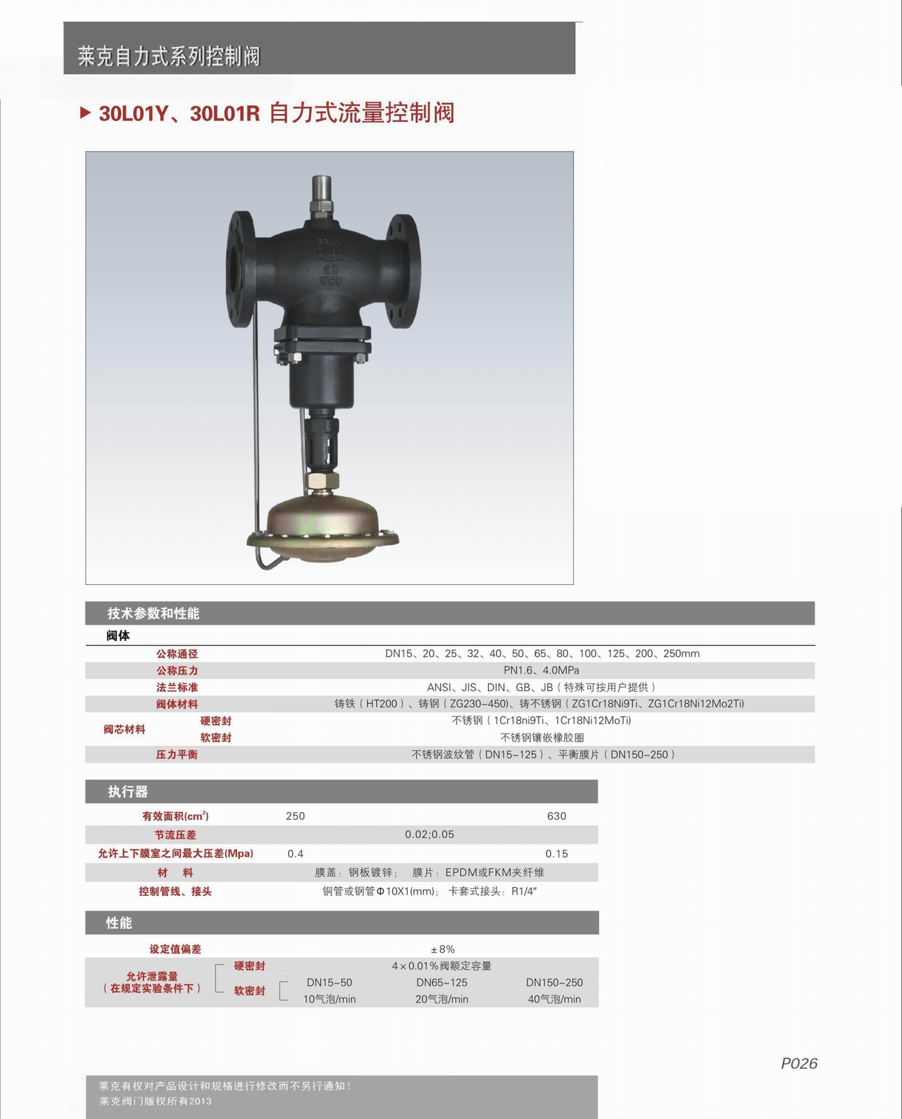 進口自力式流量調節閥技術參數