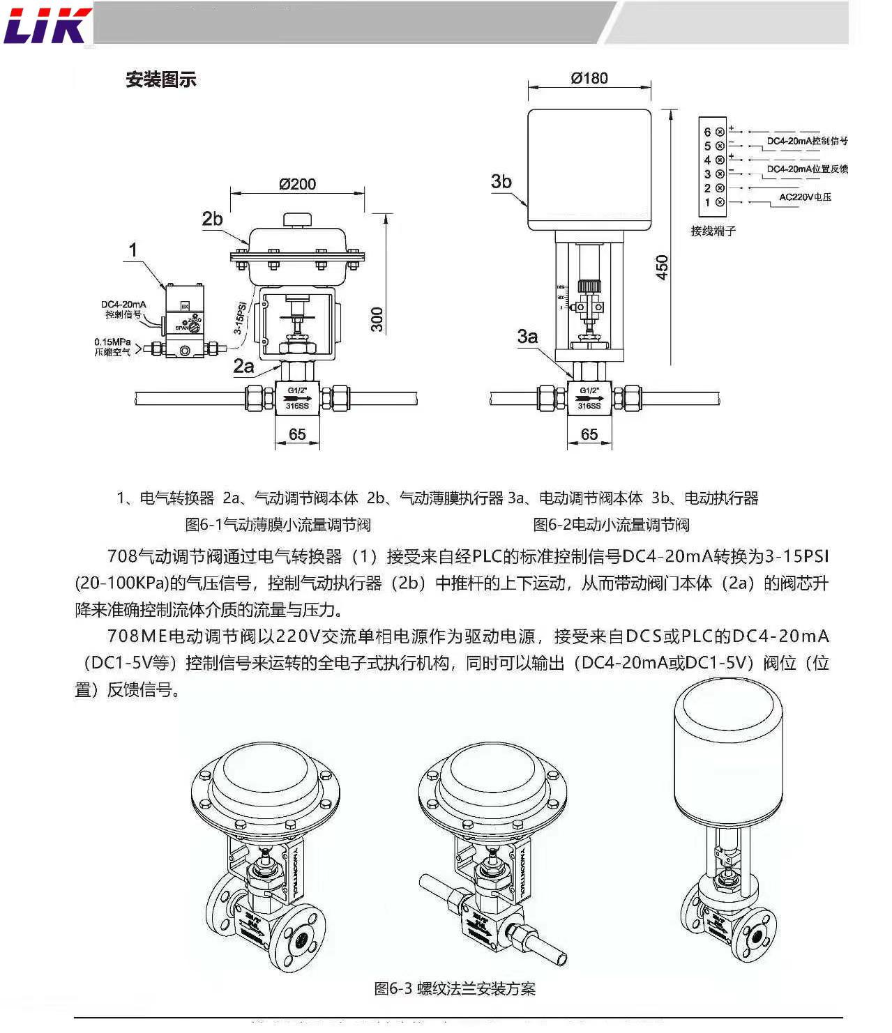 進口防爆電動小流量調節閥主要外形及連接尺寸