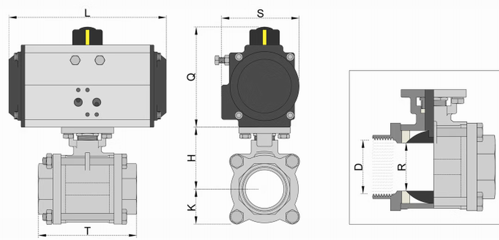 進(jìn)口氣動(dòng)不銹鋼三片式球閥外形尺寸